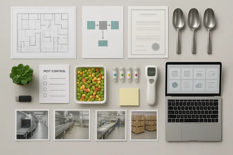 - Sanitation and pest control. SSOP, chemical list, pest control contract or in-house plan, and monthly logs summary.